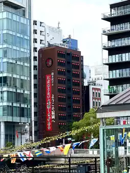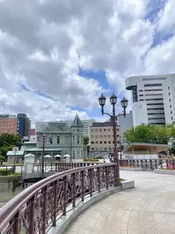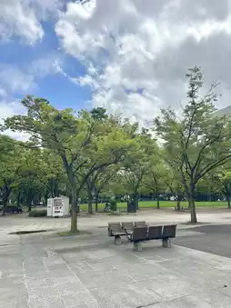 This park was designed for people to relax and unwind. It features a cafe and a spacious lawn, making it a perfect spot for a takeout coffee and a picnic. Inside the park, you'll also find the Public Hall Guest House. The building's exterior, with its striking European feel and beautiful mint green, made me feel like I was truly out of Japan. It was even better because I stumbled upon it by chance while walking along Tenjin Street. Right next to the park is the Nishinakasu River, which creates a gentle breeze. It's the perfect place to relax and unwind!