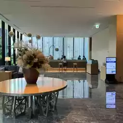 it's also connected to the subway and features a rooftop outdoor hot spring pool.