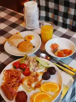 Breakfast is a hearty spread of Japanese home-style and Western dishes, perfect for fueling up before starting your day of travel!