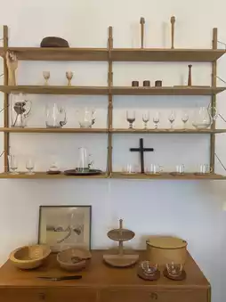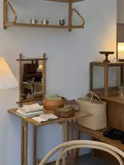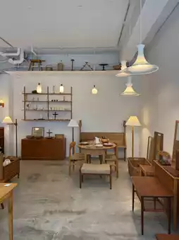 The store features warm wooden furniture and cute accessories, creating a cozy atmosphere.