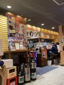The seating can be tight, and the atmosphere is quite noisy — typical of a popular ramen restaurant with a lot of people coming and going.