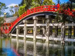 Photogenic spots include the red bridge and the panoramic view of the main shrine.