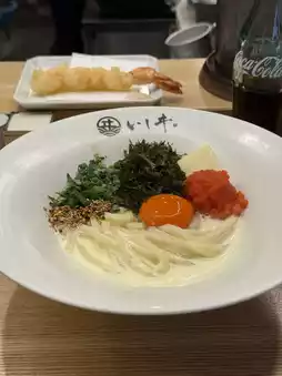 2️⃣ Mentaiko Cream Udon: Smooth udon noodles blended with rich cream, topped with mentaiko, egg yolk, and seaweed. Savory, creamy, and slightly spicy. @MenyaISHII