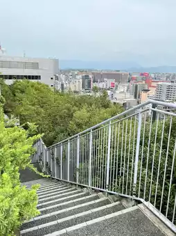 As you climb, you’ll pass small waterfalls and winding paths that open up to beautiful city views. It’s a peaceful spot to take a break, breathe in the fresh air, and enjoy the sound of flowing water — hard to believe you’re still in the middle of Tenjin.