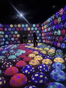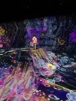 If you're a photography lover, don't miss this! It's a fun place to take photos. It's smaller than Teamlab in Tokyo, but there are fewer people, so you won't have to wait long. There's a mini-game where you download an app on your phone and catch animals on the walls or floor. There are no prizes, just for fun.