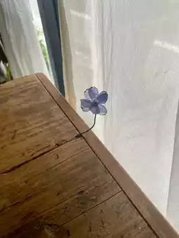 This time, I sat at a new seat, and there was a lovely blue-purple flower sprouting from the table (so cute 🫶).