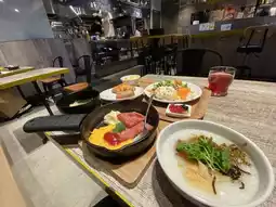 Choose your daily main dish at Haruyoshi 3-chome Teppan Bar TABELI on the first floor.