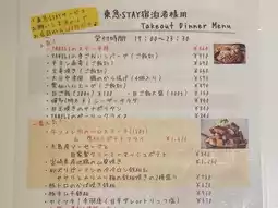 Menu items from this tenant are also available for takeout in the evening, with special menus and prices reserved for guests.