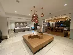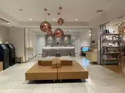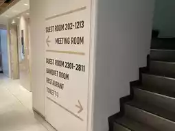 The new building is conveniently located with a bus stop directly in front of the hotel.