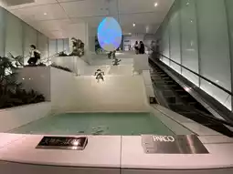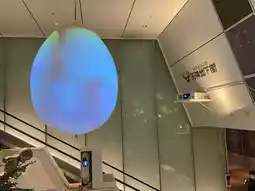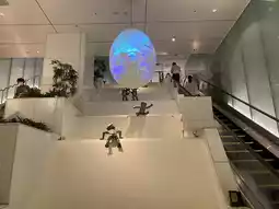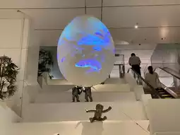On the escalator connecting "Tenjin Underground Mall" and "PARCO", there is a kappa playing in the water and an artistic egg.