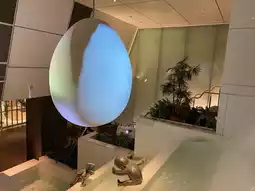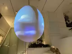 Apparently, a three-minute video show is projected onto the egg at 00 and 30 minutes past the hour!