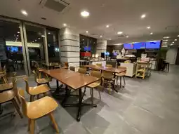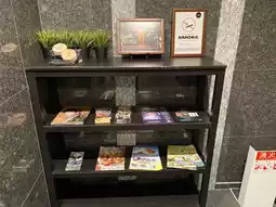 Previously, there was a bookshelf between the front desk and the elevator for manga rentals, but it has been replaced by a table and chairs.