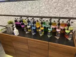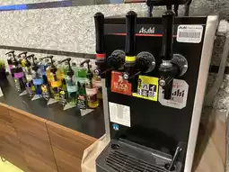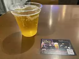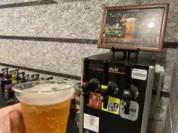 Alcoholic beverages are self-serviced and placed in plastic cups for a limited time.