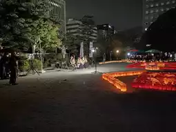 At Tochoji Temple, I enjoyed a live collaboration event featuring lanterns and biwa.