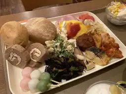 This is a breakfast scene from after the COVID-19 pandemic began to subside and travel support measures began.