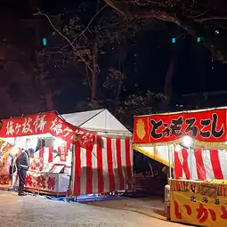 Features - The night is really beautiful. I went to the shrine during the New Year. There were people coming and going, and the vendors were constantly attracting customers. I felt the importance that the Japanese attach to the New Year. I also tried the food from different vendors, such as takoyaki, chopsticks-yaki, etc. The chopsticks-yaki with Mentaiko is full of Fukuoka style. Everyone must try it.