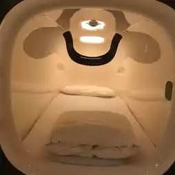 It's a simple capsule room, but it was light and easy to stay there as it came with room wear, disposable slippers, toothbrush, bath towel, and towel in a mesh bag. There was a locker on another floor to put your luggage.