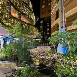 - You can enjoy the fountain show, a famous attraction of Canal City, with a Christmas feel. The fountain comes out to the beat of famous carols, and the red/green lights give it a Christmas feel. Also, Canal City is lit up with yellow lights all over, so it is really pretty when you visit at night :)