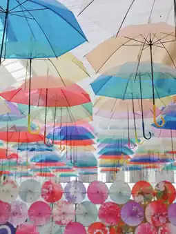 A photogenic spot available for a limited time only! "Umbrella Sky" at Inawashiro Herb Garden