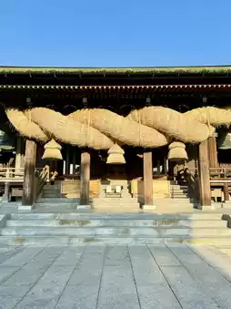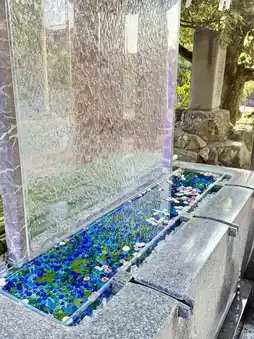 Not only is Miyajidake Shrine's Path of Light beautiful, but the Chozuya (purification fountain) is also beautiful, and the shimenawa (sacred rope) on the shrine building is quite impressive.