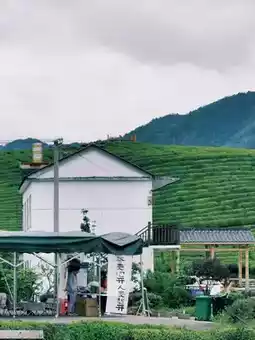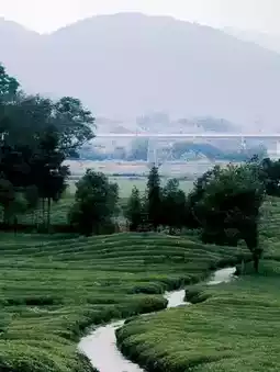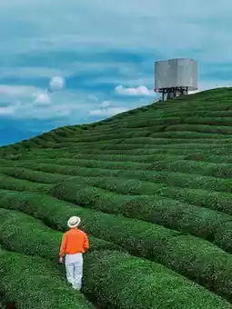 🍵Treasure Tea Garden: The undulating mountains are covered by vast tea fields. 🌿 From a distance, the tea ridges winding along the mountain slopes look like green carpets, 🏞 gently unfolding in the mountains, forming a stunning ink painting with the dark-colored distant mountains and villages. Being in it, 🌅 one feels immensely refreshed.