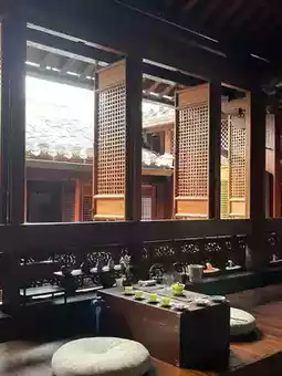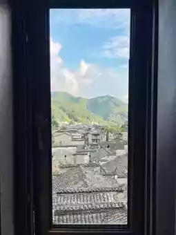 The floor-to-ceiling windows are bright, and the beautiful scenery of the ancient town is in full view
