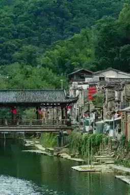 🔶 Riverside edge: With the covered bridge, river water, ancient town buildings, and distant green mountains as the background, the scene is rich.