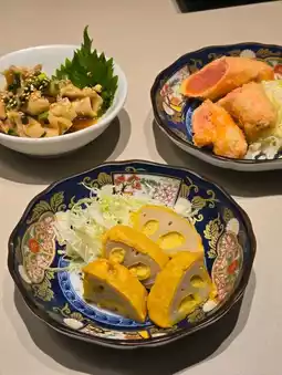 I get the impression that there are a lot of Kyushu-style dishes, such as mustard lotus root, mentaiko, and vinegared motsu.