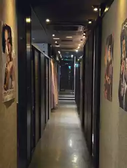 Inside the restaurant, there are rows of private rooms with sliding doors.