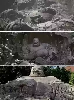 The Buddha statue is 6.8 meters high, 8.9 meters wide, and 8 meters thick! It is the largest three-dimensional Maitreya Buddha stone statue in China