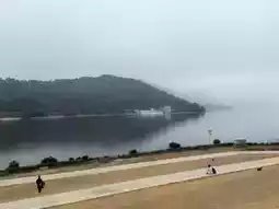 Dongzhang Reservoir is like a boundless sea, surrounding the scenic area at the foot of the mountain, seemingly endless. The waves shimmer quietly under the sunlight.