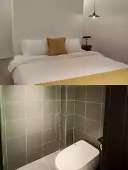 • Design highlights: A wabi-sabi courtyard renovated from an old house, with rammed earth walls and solid wood furniture, but the bathroom is equipped with a smart toilet! The room is super spacious with a tatami tea room, and the bookshelf surprisingly holds rare comics and vinyl collections