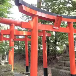 The Inari Shrine to the right of the main hall has a bright red torii gate and a dignified fox🦊