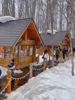 The huts located in the forest show an even more fairytale-like scenery, and the snowy scenery in the middle of winter makes it even more beautiful, so you can record very pretty snow flower photos😉