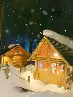 The most attractive thing about the Elf Terrace is that in winter, the cabins stand in the forest, and the thick snow covers the wooden cabins, as if entering a fairy tale world.