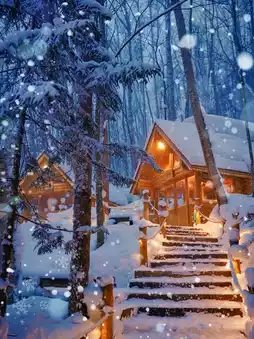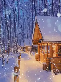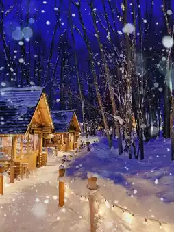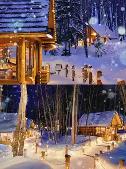 ✔️After night falls, the forest, lights, wooden houses, white snow, and starlight meet, and the photos have a fairy tale atmosphere