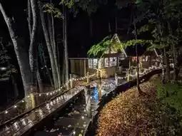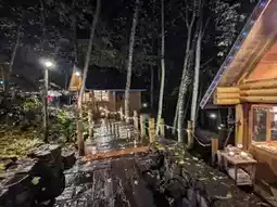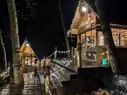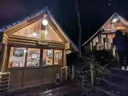 Visiting in the early evening during autumn, with a light drizzle, makes the Forest Fairy Terrace even more magical. The dim lights of the cabins add a special ambiance. You can also visit the souvenir area of the Prince Hotel to collect souvenirs from all over Hokkaido, making it a one-stop shopping experience.