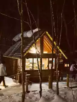 Ningle Terrace in Hokkaido is absolutely magical at night . The warm lights, the cozy wooden huts, and the forest vibe make it feel like a little fairytale village.
