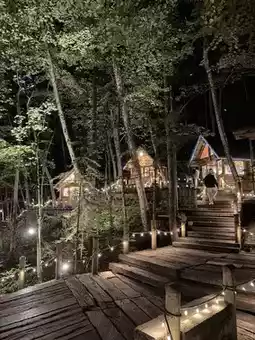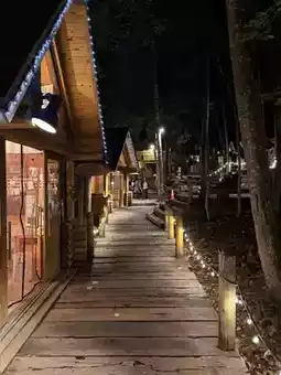 At night, the area is lit up, creating a magical atmosphere that's completely different from the daytime. It's popular with couples and families.