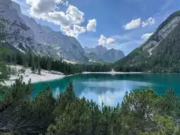 The Italian Alps, specifically the Dolomites and the Lake District, where numerous famous lakes are nestled among towering peaks. Some of the most notable are within the Dolomites, each with unique characteristics and hiking opportunities. Lago di Braies (Pragser Wildsee)