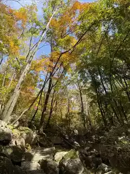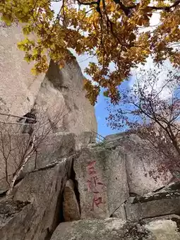 The last stop of the Northeast Red Leaf Tour is climbing in Fushun. On the way back from Ji'an to Shenyang, exit at Jiahe on the Futong Expressway and drive to Fushun San Kuai Shi National Forest Park. The red leaves are also red, the natural environment is good, there are few people, suitable for a day of climbing. But it takes a long distance to enter the mountain after getting off the highway, and there are many small flying insects in the wilderness. The peak of San Kuai Shi is 1131 meters above sea level, and the climbing distance is 2518 meters. The whole journey is stone steps climbing, which takes about four hours for a quick round trip, and five to six hours for a slower one. The view from the top of the mountain is unlimited, and there are rest places along the way to enjoy, sigh coffee and admire the red leaves, and eat the chicken heart fruit bought in Huanren. San Kuai Shi National Forest Park
