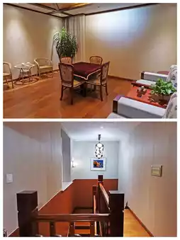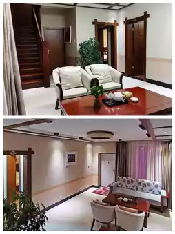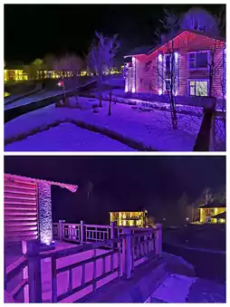 We stayed in the forest cabins at the Biquan Lake Resort. There are 24 cabins in total. The house has three bedrooms and can accommodate six people. Outside the bedrooms, there is a public living room and chess and card room where you can drink tea, chat, or play chess and cards. The house is fully equipped and each bedroom has a separate bathroom. From the balcony on the second floor, you can see the starry sky at night. It was freezing outside, but it was over 20 degrees inside, with a temperature difference of 40 to 50 degrees inside the house.