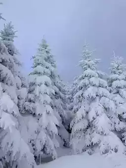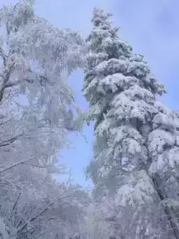 Walking along the winding mountain road, it feels like stepping into a fairyland isolated from the world. ❄️ The tall trees are covered with thick snow, and the branches are bent, as if bowing to welcome people.