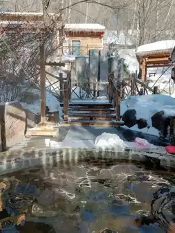 Soaking in a hot spring with snowflakes falling from the sky is the kind of hot spring that people yearn for. The address is Tianmu Days Hot Spring in Changbai Mountain ♨️. I heard it's one of the best hot springs in Changbai Mountain 🧖.