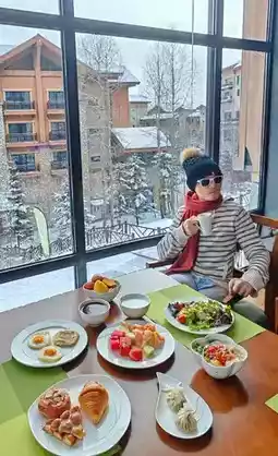 The hotel offers a wide range of dining options, including a rich breakfast. You can choose a window seat and enjoy breakfast with a view of the snow. There are a variety of breads, salads, noodles, and eggs. The outdoor area of the lobby bar is a great place to take photos. You may even meet the adorable hotel pet.