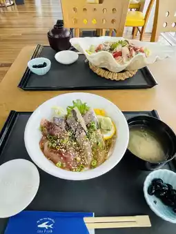 This is a facility with souvenirs and restaurants in Minamiboso/Kanaya, where the Tokyo Bay Ferry connecting Kurihama in Yokosuka and Minamiboso is located. There are shops on the premises where you can enjoy fresh seafood such as sushi and hamayaki. This "The Fish" is a restaurant where you can enjoy a spectacular 180° ocean view and popular seafood bowls and pasta as meals that look great on social media.