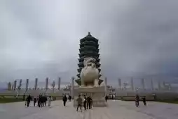 Through the pagoda gate tower, there are 12 dragon pillars symmetrically arranged on both sides of the guideway. The reliefs on the dragon pillars depict the evolution of the dragon's image over 5,000 years of Chinese history.