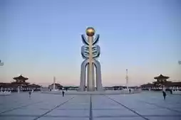 Dongji Square, with its back to the motherland and facing east, is shaped like the sharp bow of a warship, symbolizing China as a giant ship setting sail. In the center of the square stands a massive sculpture of the Chinese character "Dong" (East). Above the character is a sphere, like a hand holding up the sun, symbolizing hope and new beginnings.