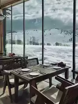 As the hotel is surrounded by mountains on all sides, every window in the lobby, restaurant bar, and room faces the snow-capped mountains, and the views are different.