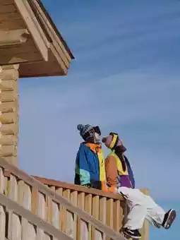 Our rainbow vintage-style ski suits🌈look great in photos! They have a Japanese film vibe. I love them!